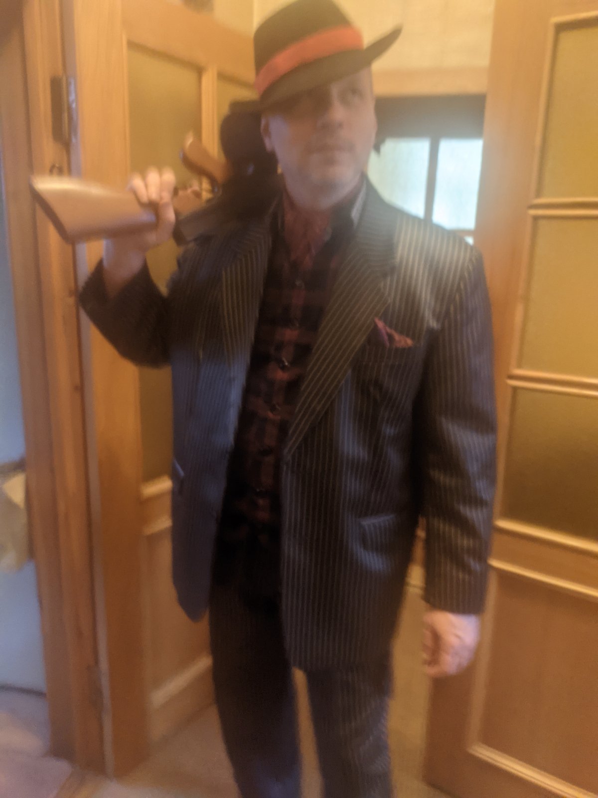 В аренду костюмы костюмированной вечеринки в стиле Чикаго, 30-40 года, кабарэ : Костюмы для образа гангстера-шляпы, костюм в полоску, смокинг, подтяжки, фрачные рубашки, запонки, бабочки, нашейные платки и галстуки, жилеты, автомат Томпсон, элегантная трость и цилиндр. Подружка мафии из кабаре в боа и головной повязке, девушки танца кан-кан, копы , узники, священники, платье для Мерелин Монро и др