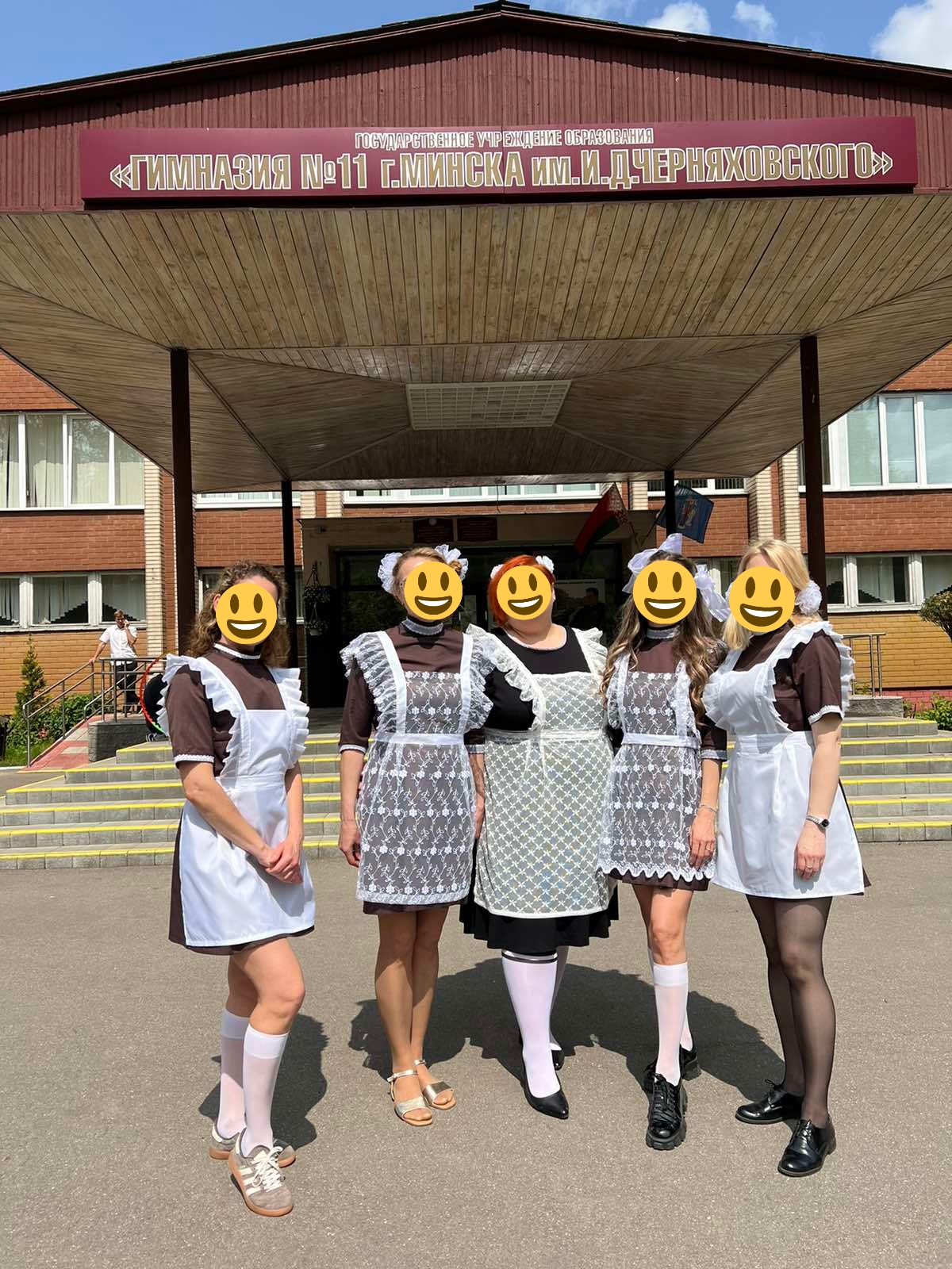 Форма школьницы СССР (платье коричневое с передником белым), Комплект для танца кан-кан (юбки, головной убор -капор, топик или корсет, панталоны),