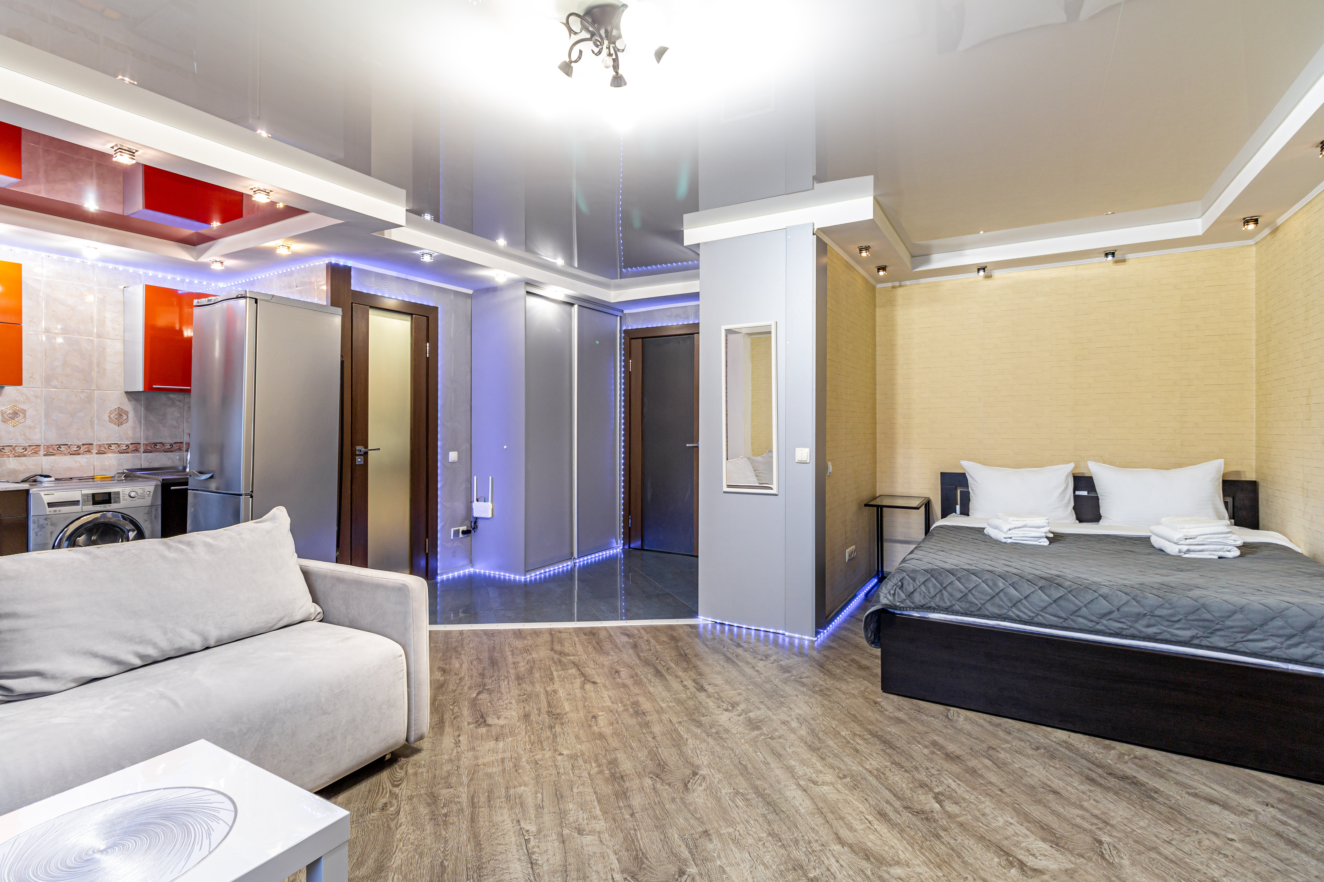 Вся инфраструктура: транспорт, магазины, торговые центры и торговые ряды, банки в шаговой доступности. В квартире есть всё полностью для комфортного проживания. Вся необходимая техника, посуда и свежие постельные принадлежности. Гармоничный современный интерьер.